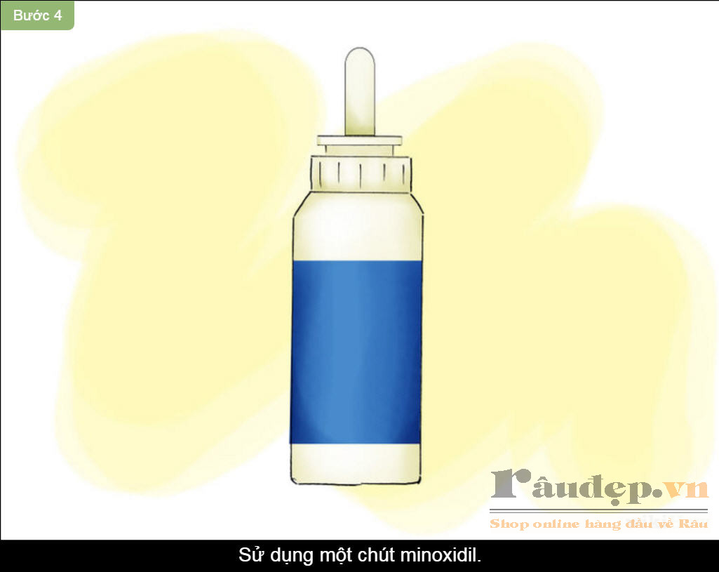 4. Sử dụng một chút minoxidil. Loại thuốc mọc tóc bôi ngoài da này thường được sử dụng để kích thích tóc mọc trên đỉnh đầu, nhưng một số nghiên cứu sơ bộ đã cho thấy rằng nó cũng có thể giúp kích thích râu mọc.
