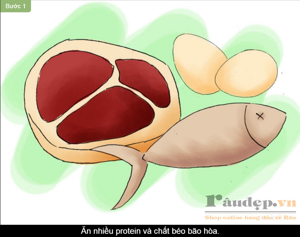1. Ăn nhiều protein và chất béo bão hòa. Protein và chất béo là nhân tố then chốt trong việc thúc đẩy râu và tóc mọc nhanh chóng, khỏe mạnh.